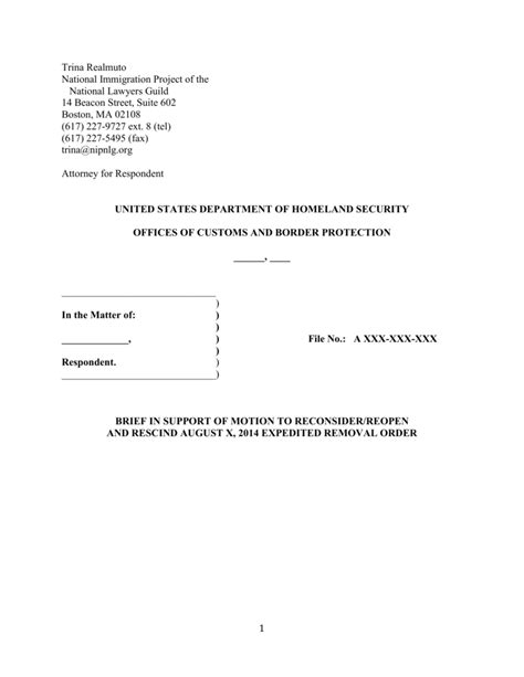Read Online MOTION TO RECALENDAR IMMIGRATION COURT Nook Internet Archive
